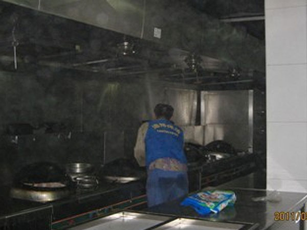 迪邦保潔公司人員正在為“龍華大酒店”做油煙機清洗。